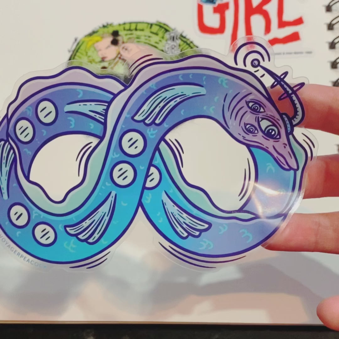 5"x3" Die Cut Vinyl Sticker with transparent background.