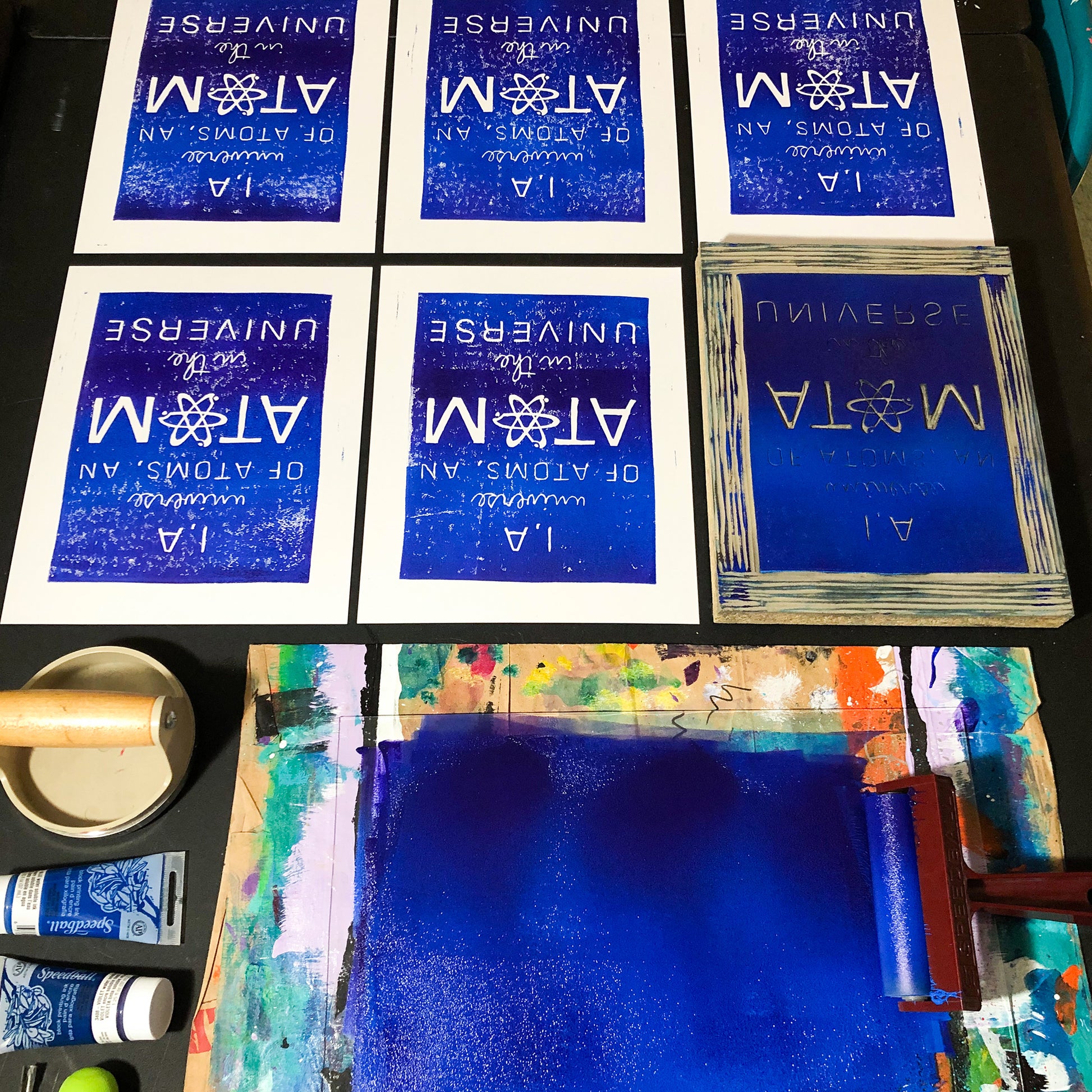 8"x10" Linocut Print - A Universe of Atoms