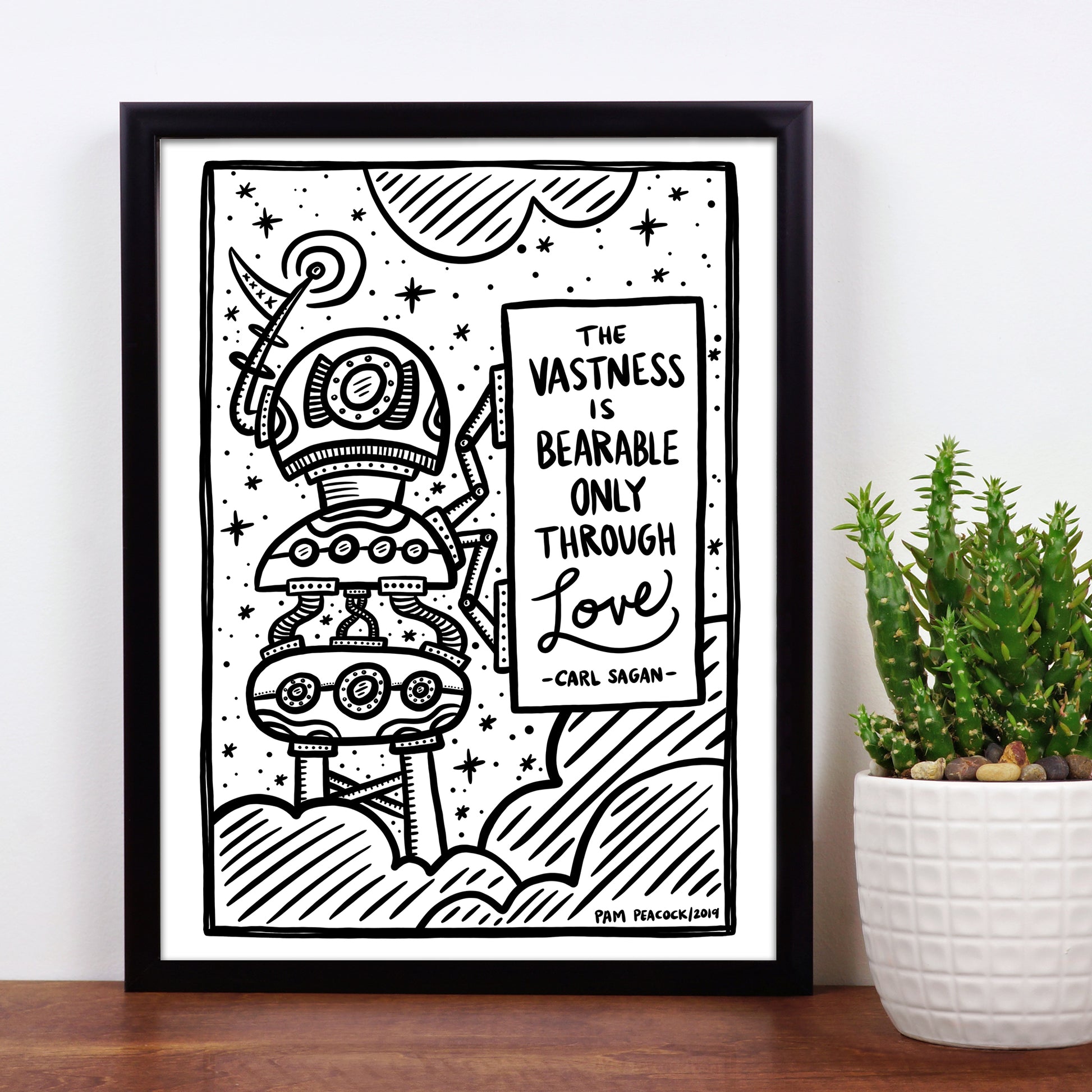 Inspired by and featuring a quote by Carl Sagan: "For small creatures such as we the vastness is bearable only through love."