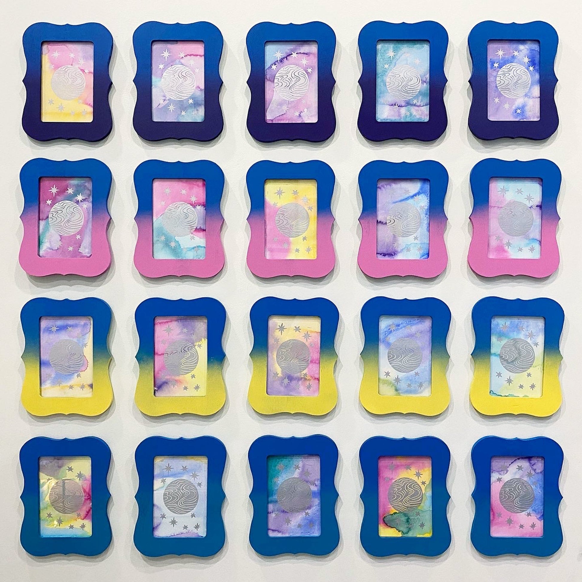 Original art; watercolor and relief print on paper. Framed and ready to hang.