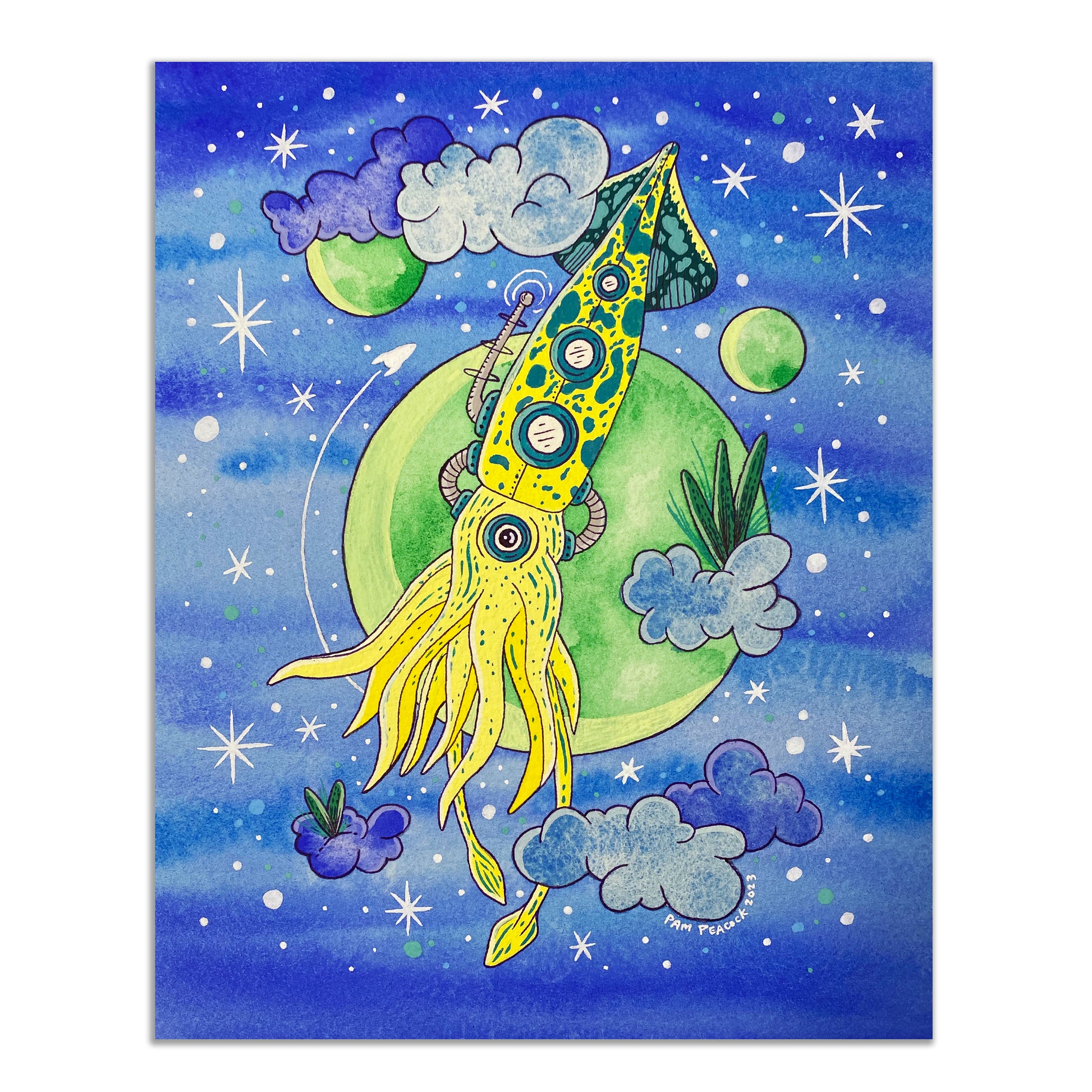 "Squid" - 8"x10" Original Framed Painting