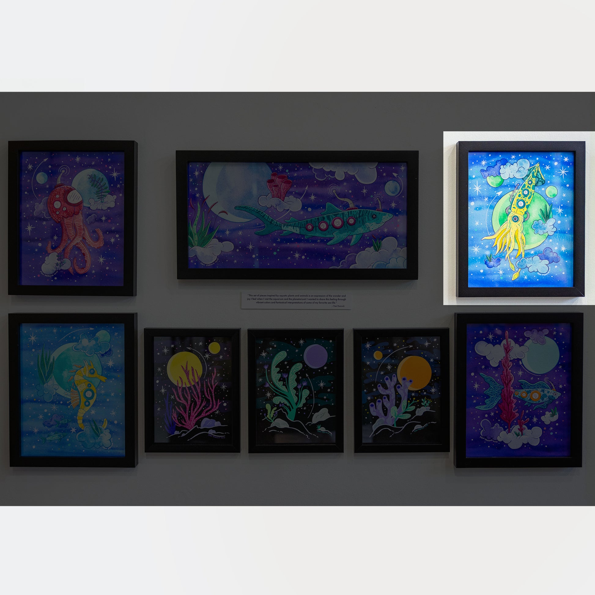 This piece was displayed as part of my SEAFRIENDS collection at the Good Vibes with Lotus Easters Club group exhibition at Empire Arts Gallery in August 2023.